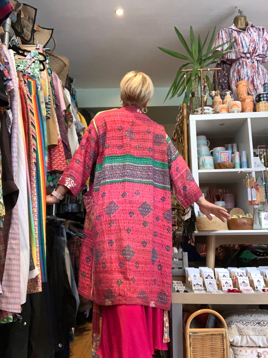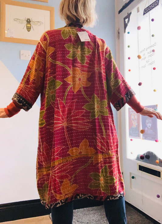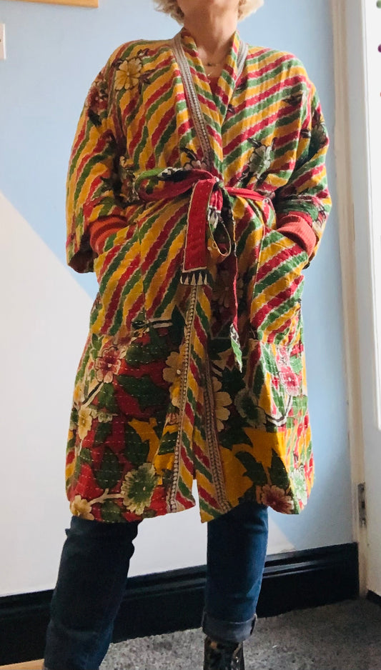 Hand made colourful Indian kantha quilted reversible jacket ~ free size 8-16