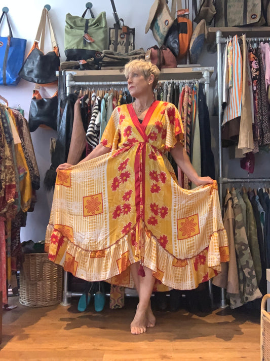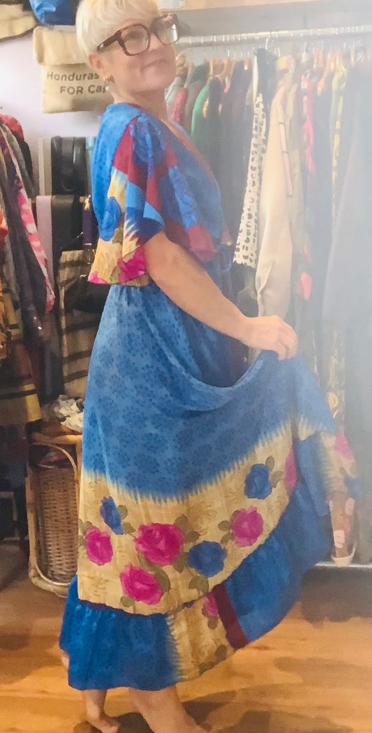 Handmade boho/prairie style silk sari dress
