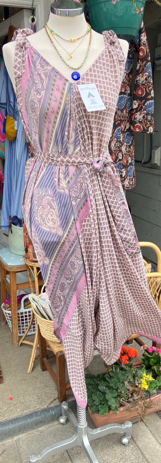 Hand made Indian sari fabric belted jumpsuit/Romper ~ free size 8-18