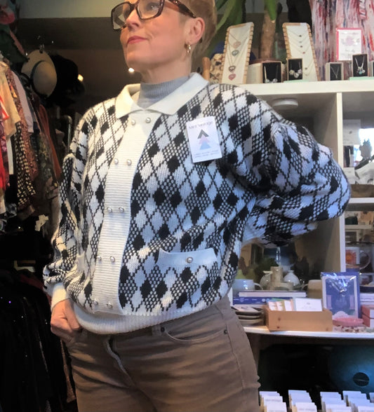 Vintage 1980’s patterned boxy cardigan with fancy buttons