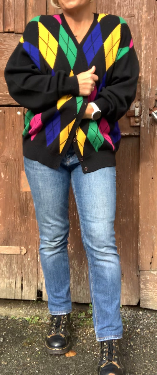 Vintage preppy vibes 1980’s colourful diamond pattern cotton knit cardigan