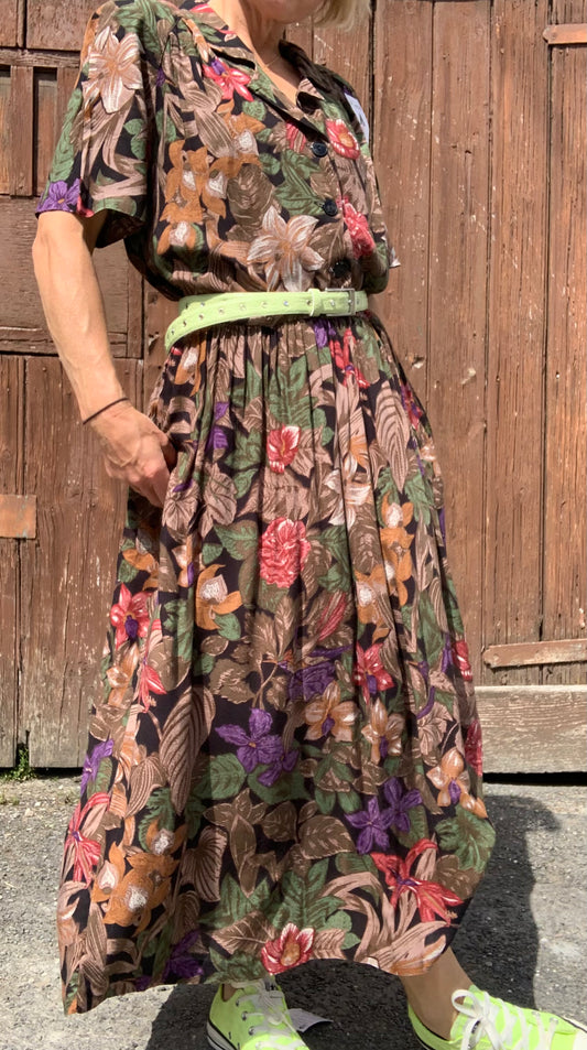 Vintage 1980’s floral mid length shirt waister dress