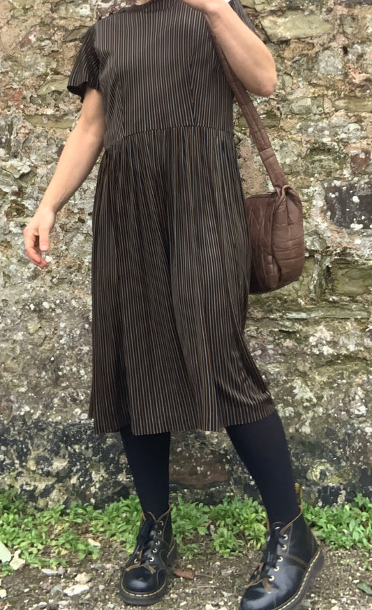 Vintage 1970’s silky brown pinstripe drop waist dress