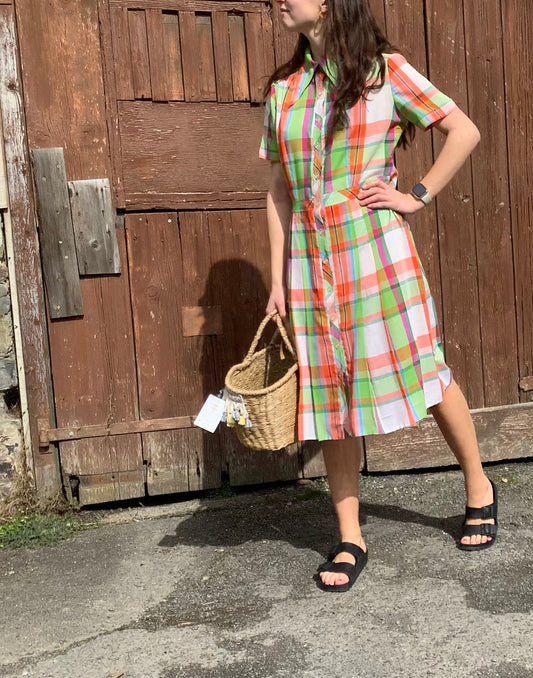 Vintage 1970’s orange/green cotton check shirt dress