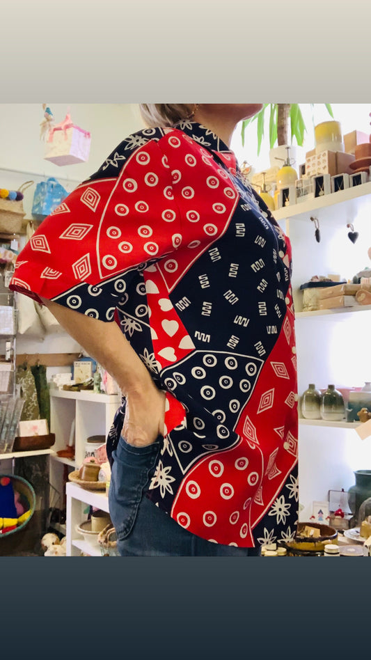 Handmade colourful Indian sari fabric bell sleeve wrap top