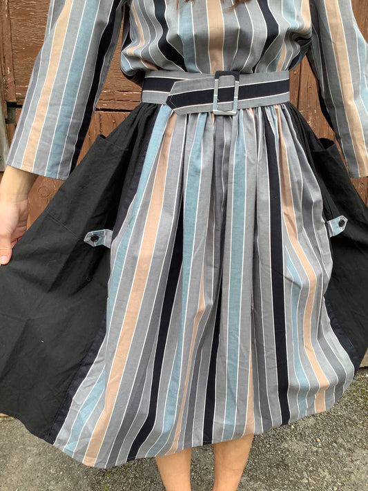 Vintage 1980’s grey stripe cotton midi dress