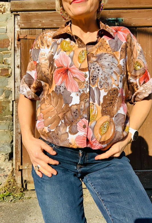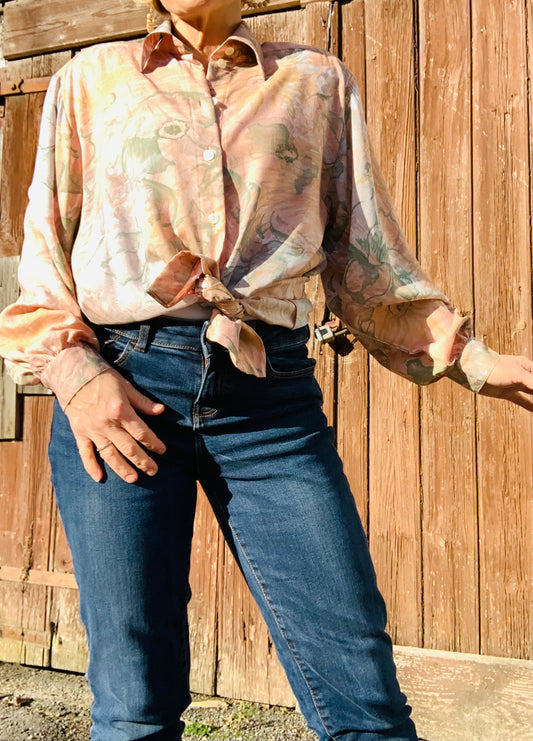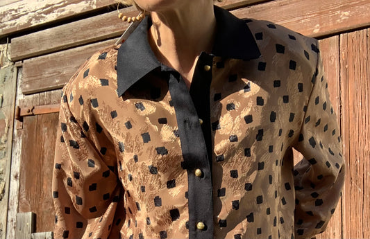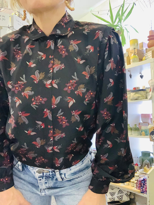 Vintage 1980’s Peter Pan collar black floral design blouse