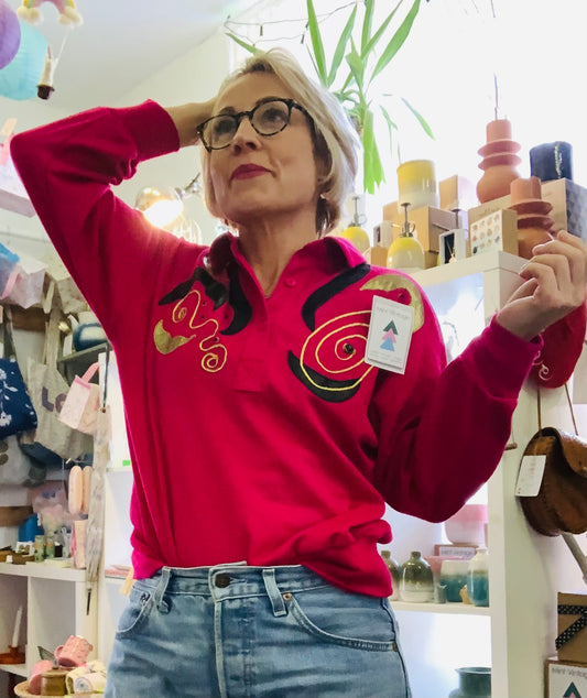 1980’s vintage hot pink metallic appliqué sweatshirt
