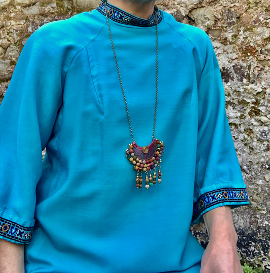 Vintage 1960’s handmade turquoise blue shift dress with embroidered trim