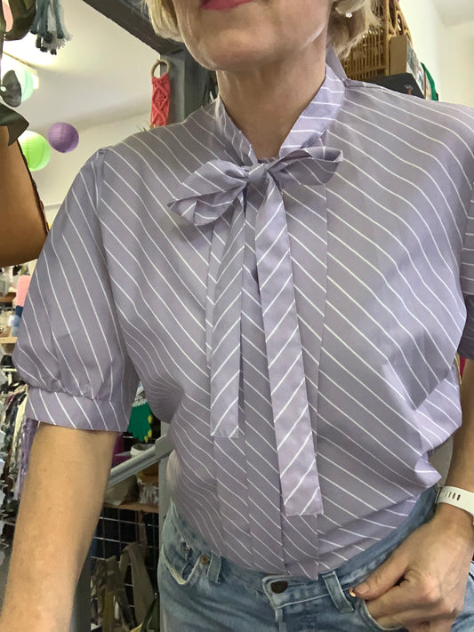 Vintage 1980’s Windsmoor pastel lilac stripe pussy bow blouse