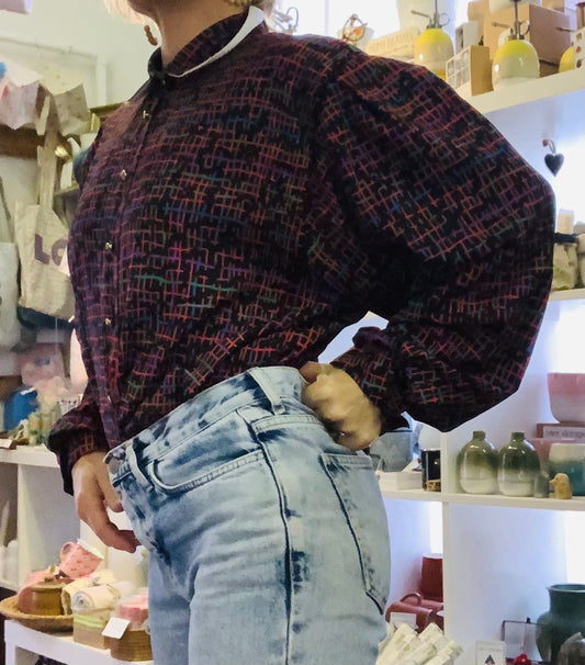 Vintage 1980’s Jaeger colourful geometric print blouse
