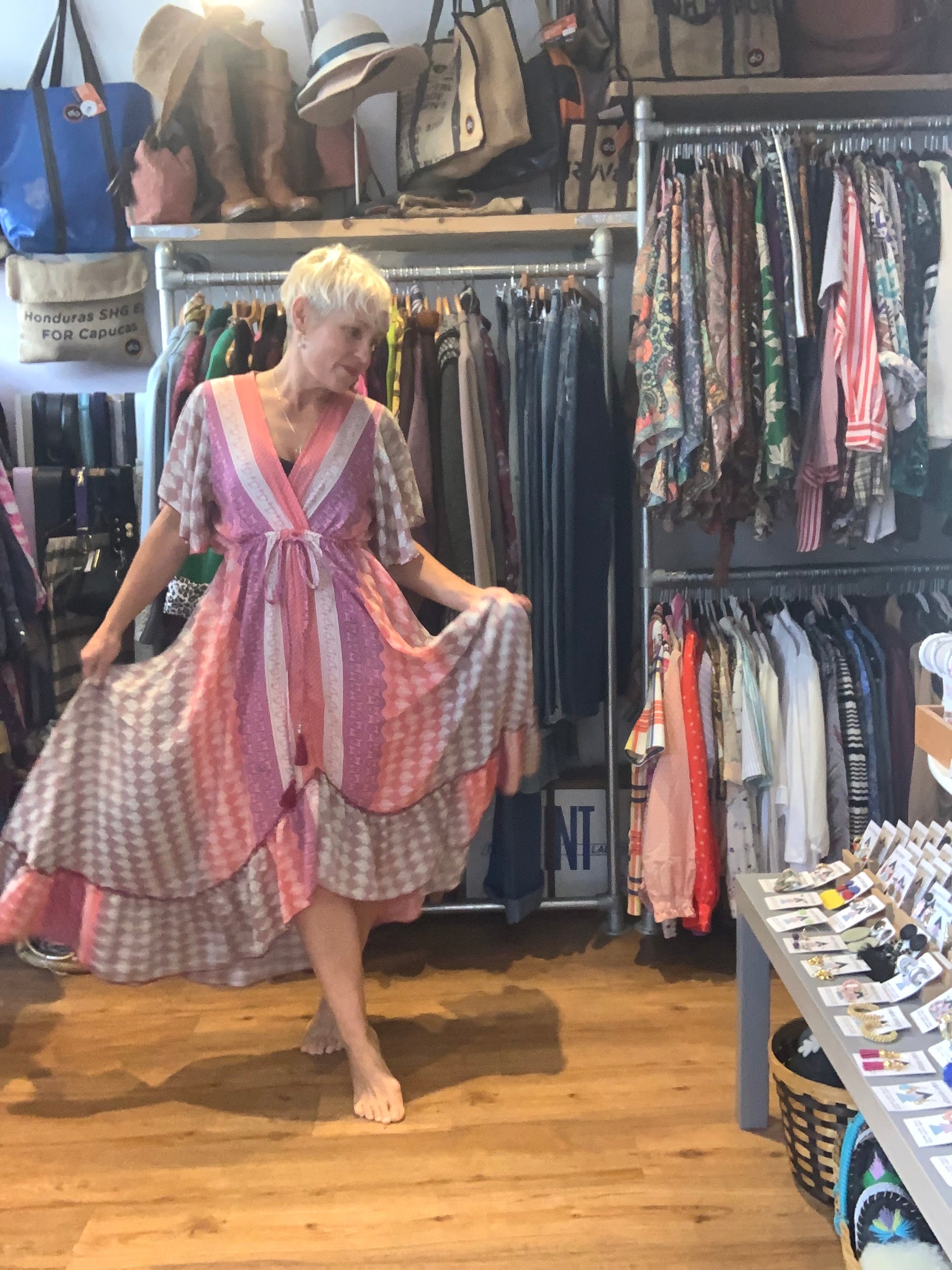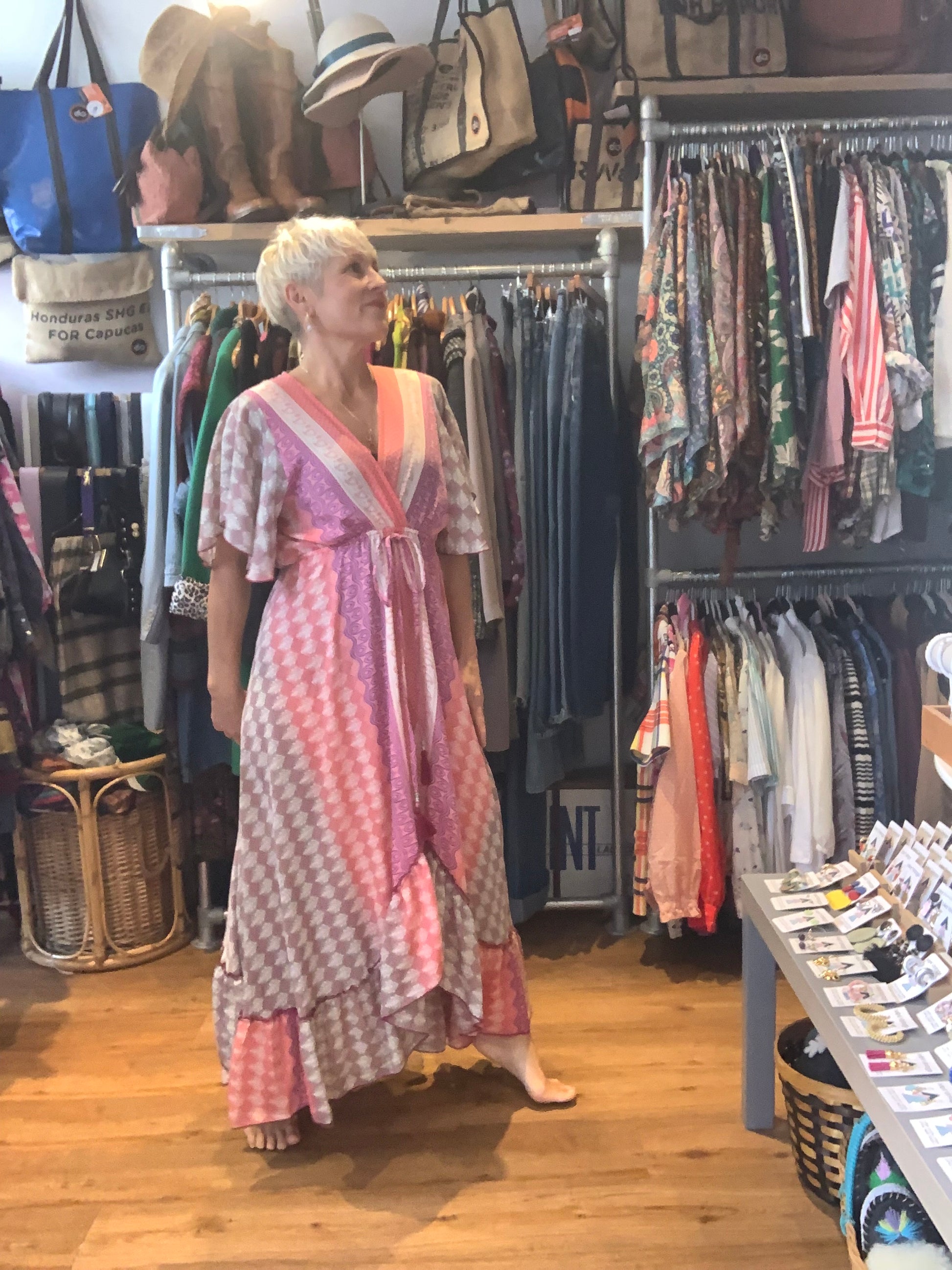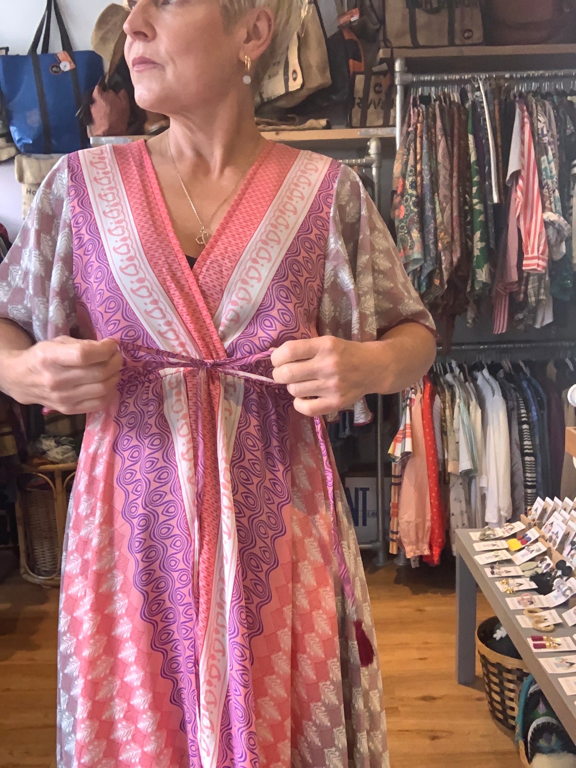 šI sell these dresses in my shop in Devon where no 2 are the same I often receive positive feedback from customers who have bought them. As the dresses are made from ethically sourced Indian vintage sari fabric there can be the odd imperfection but nothing to spoil the overall look or wearing of the dress