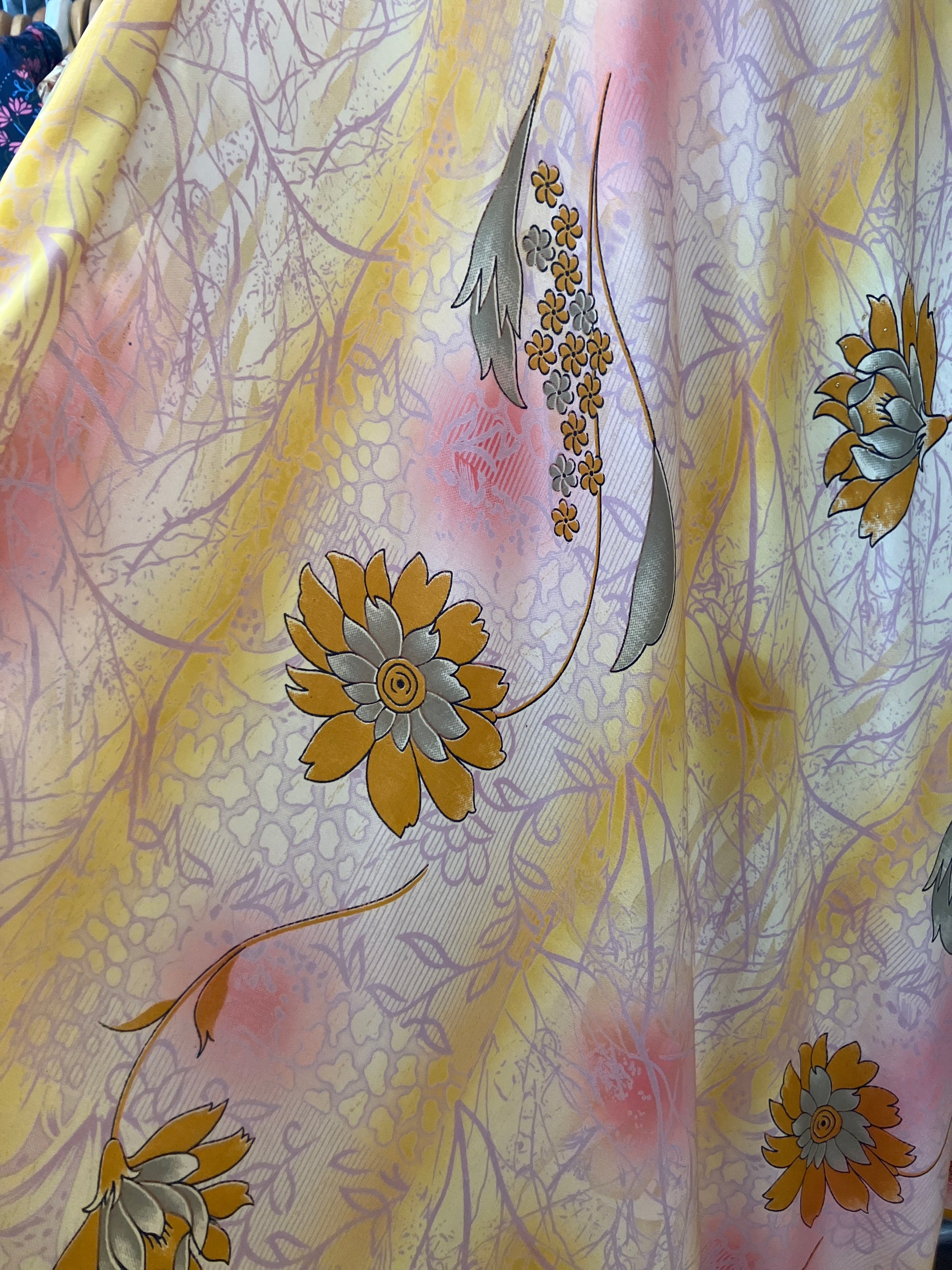 The fabric is a silk mix and feels silky too touch, they are made from beautiful recycled vintage sari’s and are made from a generous amount of fabric, Each one is different no two are the same