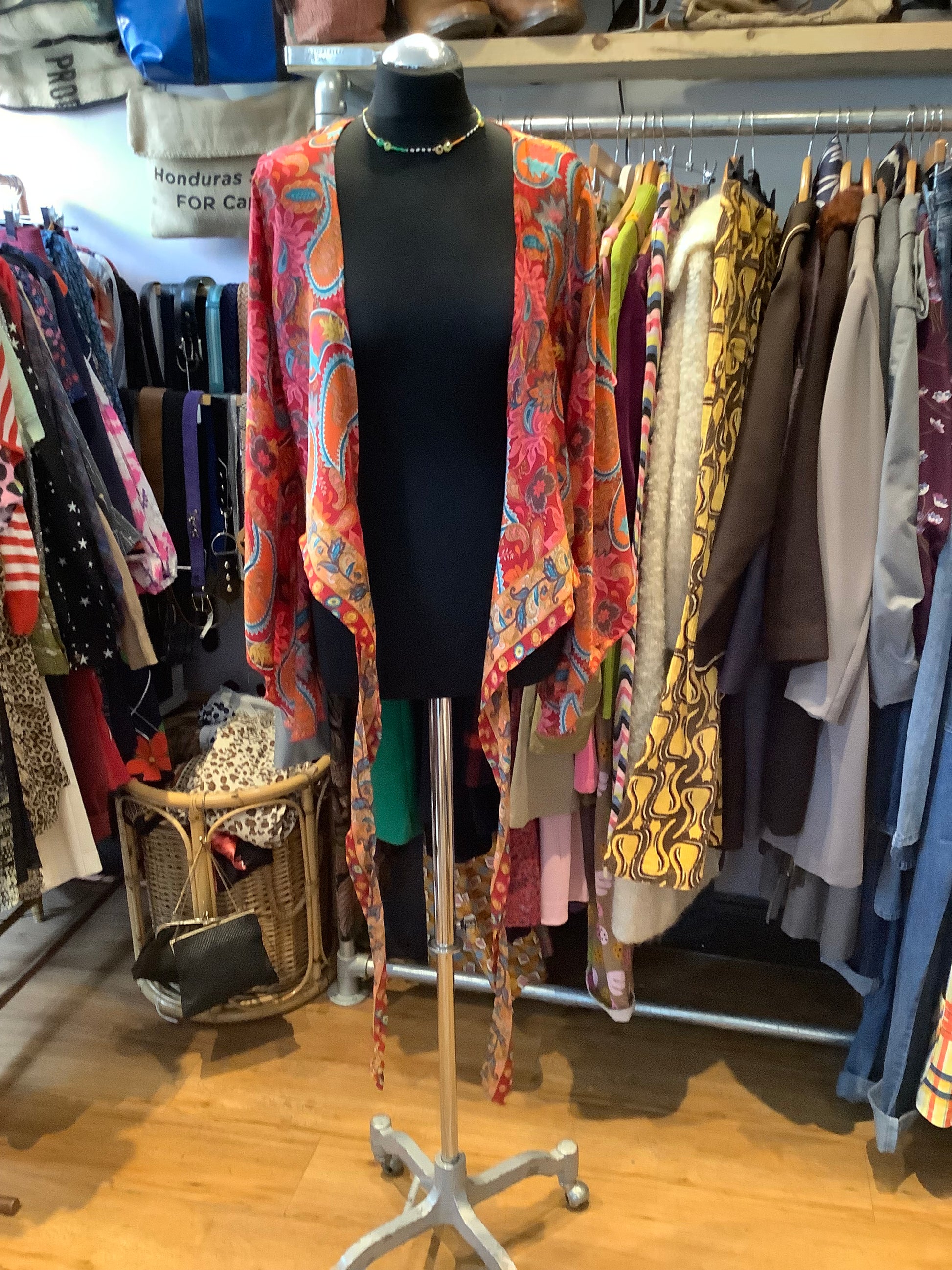 This boho style wrap top is crafted from recycled Indian sari fabric, Its lightweight, sustainable material is comfortable while still looking stylish. Its versatility gives you the freedom to create multiple looks whether you wear it open over another layer as a shrug, wrapped with ties at the back or just as a front tie belly top over a vest, dress or even a skinny polo in the cooler months it will be a chic addition to your wardrobe.