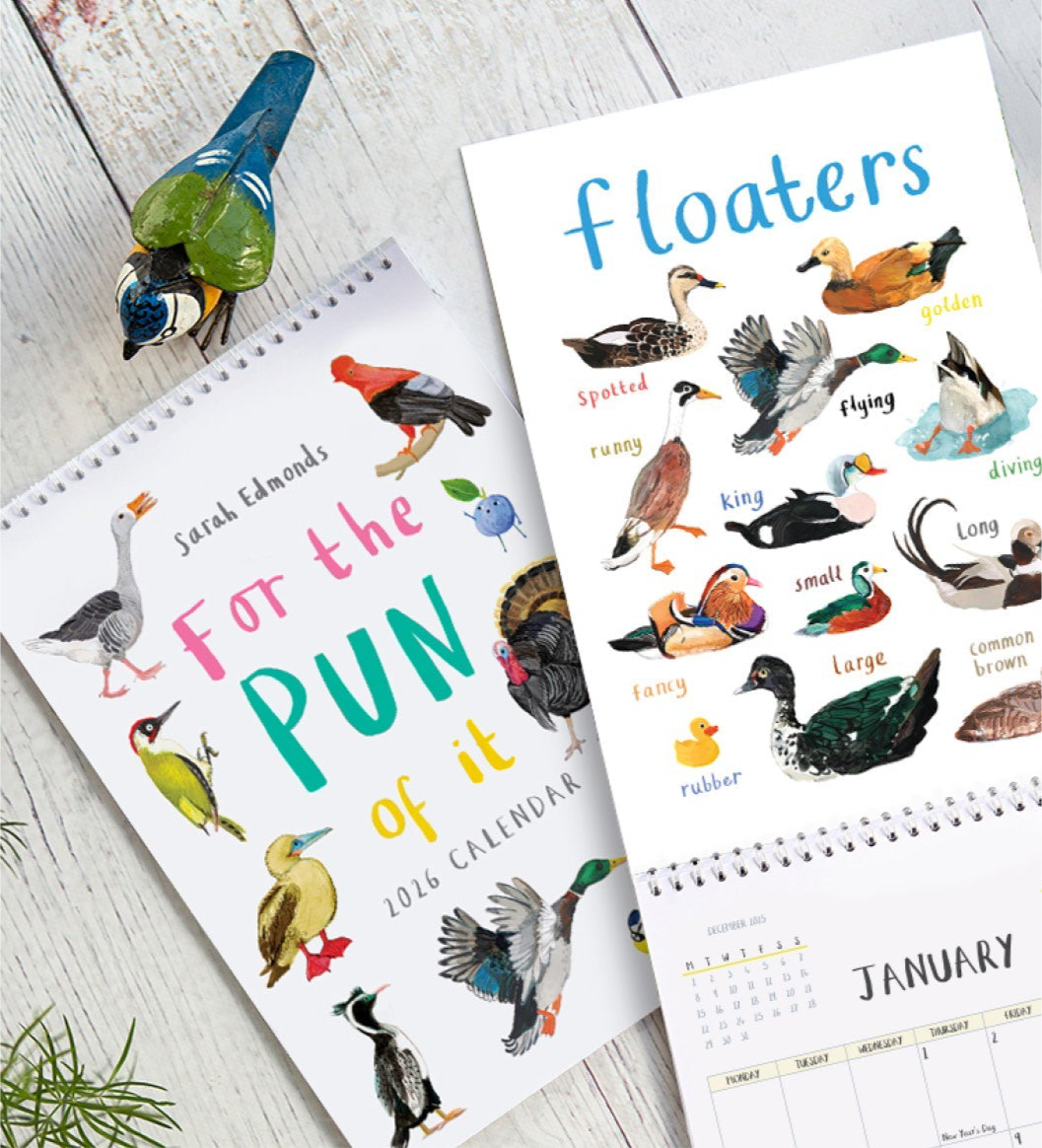 It's calendar time! The Pun of it wall calendar is guaranteed to raise a smile each month. It features twelve cheeky charts designed and illustrated by Sarah Edmonds and makes the perfect seasonal gift!